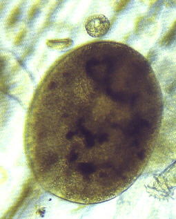 原因虫は、原生動物の繊毛動物で、学名イクチオフチリウス・ムルチフィリス(Ichthyophthirius multifiliis)という。虫の大きさは0・7㎜程度で、大きなものは1㎜を越すものもあり、多くは肉眼でも確認できる。形は卵形または球形で、体全体が繊毛で覆われ、繊毛を動かすことによって遊泳する。