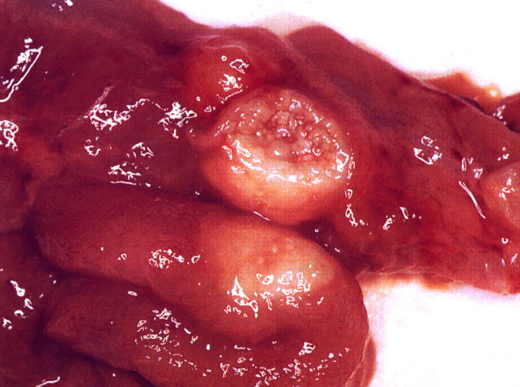 - 本病であれば、病魚の腸管の中には白い腫瘍状のものがあり、大きさは一般に直径数㎜から5㎜程度である。また、時には体長80㎝の鯉で、赤ちゃんの握りこぶしほどに達することがある。