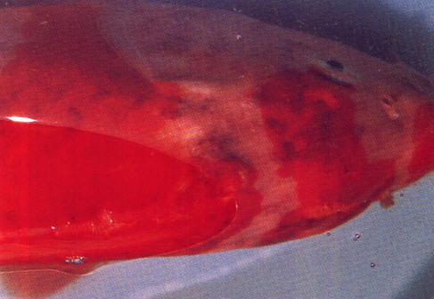 - 本病には二種類あって、一つは主として頭部を中心に1~2㎜の黄褐色に見える皮膚の隆起ができるもの。もう一つは主に鱗上に0・5~2㎜の球状の小さなこぶが散在する形でできるものである。通常は両者とも魚の行動、摂餌などには全く異常なく、水温上昇とともに夏までには自然治癒するが、完治するまでは皮膚に開口した跡が残り、商品価値を低下させる。