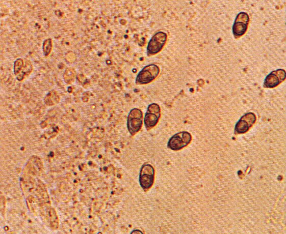 外観は白点病やエピスチリス症と間違えやすいが、病魚の体表から栄養体を採取して、押しつぶして200~400倍程度の顕微鏡で見ると、卵形をした胞子を確認できる。