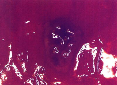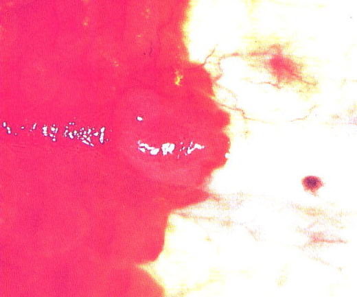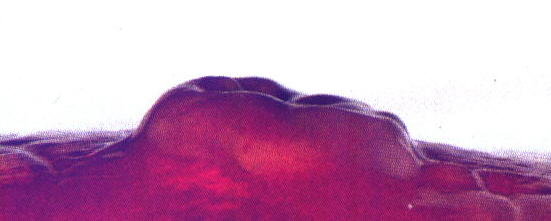 - 赤褐色ないしは薄茶色をして、やや凹凸がある。周囲より少し膨張し、縁が不規則。